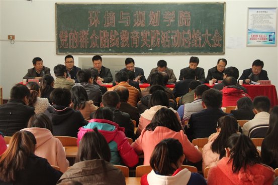 环境与规划学院党总支书记王东平对环境与规划学院党的群众路线教育实践活动开展情况进行了全面系统的汇报,并指出开展党的群众路线教育实践活动为环境与规划学院党员干部进一步砥砺品格、锤炼作风搭建了崭新的平台,为进一步优化工作环境提供了良好的载体。学院党总支将总结借鉴好教育实践活动的经验,运用、巩固好教育实践活动的成果,继续抓好整改落实、建章立制工作,把教育实践活动的经验、成效运用到各项工作中去,进一步提高思想认识,转变作风,深化改革,加快发展,抓住机遇,迎接挑战,满怀希望,战胜困难。