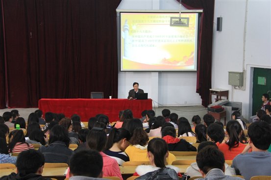 3月28日下午,根据党的群众路线教育实践活动实施方案“三个一”的要求,副校长程印学在文化路校区大学生文工团报告厅为环境与规划学院师生讲了一次题为“投身党的教育实践活动,立志争当时代先锋”的党课,环境与规划学院领导班子与教工党员、学生党员、入党积极分子共同聆听了党课。