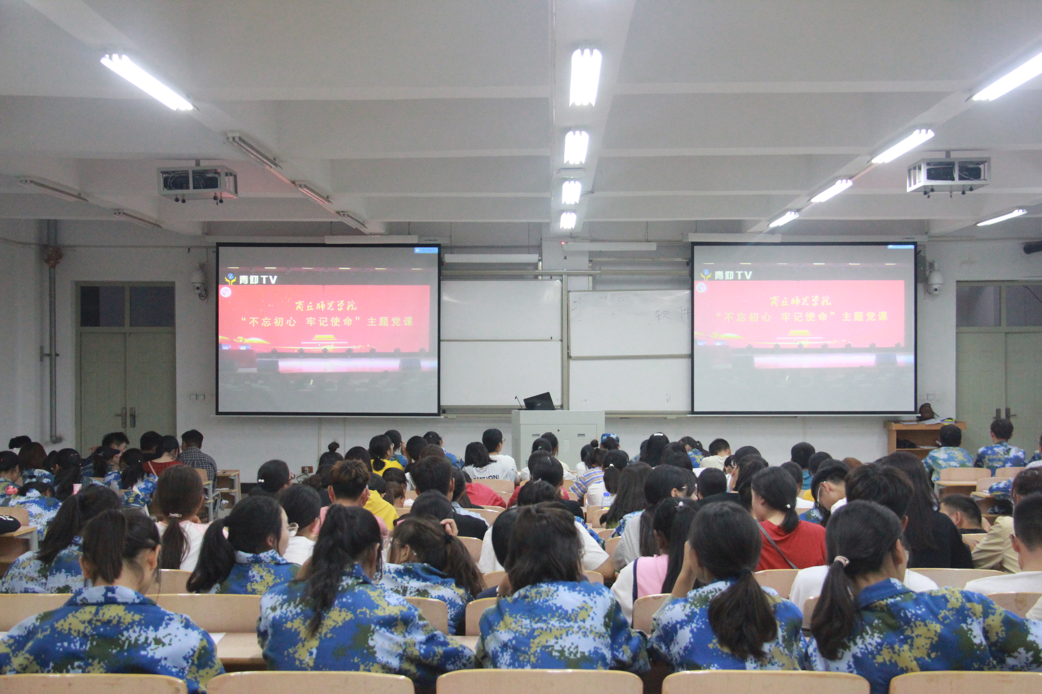 为深入扎实开展“不忘初心、牢记使命”主题教育,9月25日,beat365正版唯一官网在梁园校区组织2019级新生集中观看以“新时代、新使命、新担当、新作为”为主题的党课直播。本次党课直播由校党委书记介晓磊主讲。