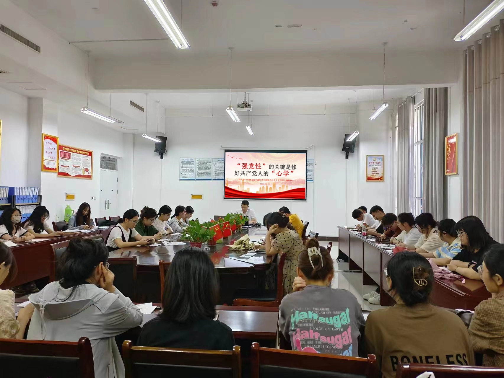 10月23日,beat365正版唯一官网学生第二党支部书记张瑞杰为支部全体入党积极分子上专题党课。