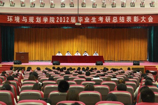 6月1日下午,环境与规划学院在文化路校区大礼堂隆重召开2012届毕业生考研总结表彰大会。学院全体领导班子及全院师生共同参加了大会。会议由院党总支副书记郑颖贞主持。