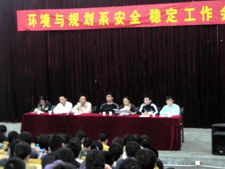为切实做好甲型H1N1流感防控工作,落实beat365官网安全稳定工作会议精神,维护学校安全稳定,9月7日晚,环境与规划系在文化路校区大学生文工团召开全系师生安全稳定工作会议。与会领导有该系党总支书记张喜庆、副书记贾永、办公室主任李红忠以及三位辅导员老师。此次会议由团总支书记李琳主持。
