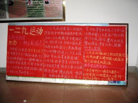 在12月9日到来之前,环境与规划系各个教学班纷纷以“一二.九”运动为主题制作了主题板报。系学生会也以在系教学楼入口展出展板等形式迎接“一二.九”运动纪念日的到来,提醒全系师生铭记历史勿忘国耻。晚上,环境与规划系全系学生在文化路校区文工团集体观看了电影< 黄石的孩子>,把同学们带到那个战争的年代,在这个特殊的日子里,激发了大家的爱国热情,让同学们受到了一次深刻的爱国主义教育。