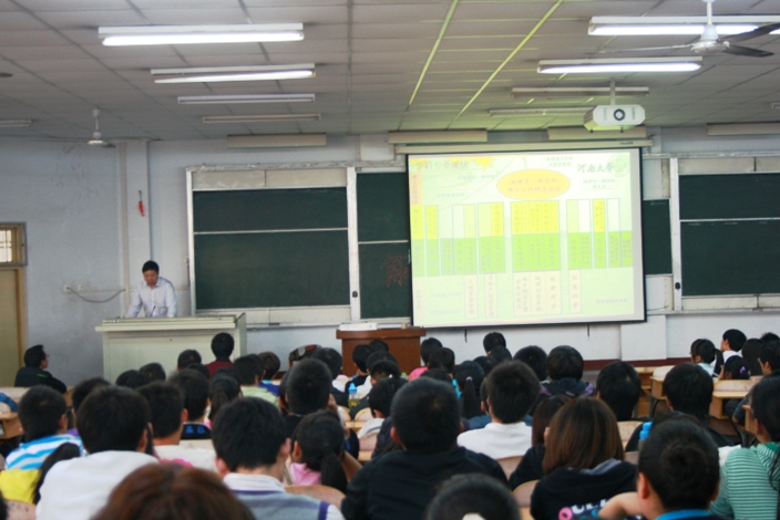 朱连奇教授首先向同学们介绍了河南大学环境与规划学院学科设置及专业现状,并着重向同学们讲解各专业性质、研究内容,让同学们考研有明确的方向。朱教授还就河南大学环境与规划学院目前的师资力量、办学规模、教学成果以及学生就业、升学状况给予详细介绍,并向大家讲解了该院具有地方特色的黄河地域研究成果,将河南大学环境与规划学院的办学特色加以阐述。
