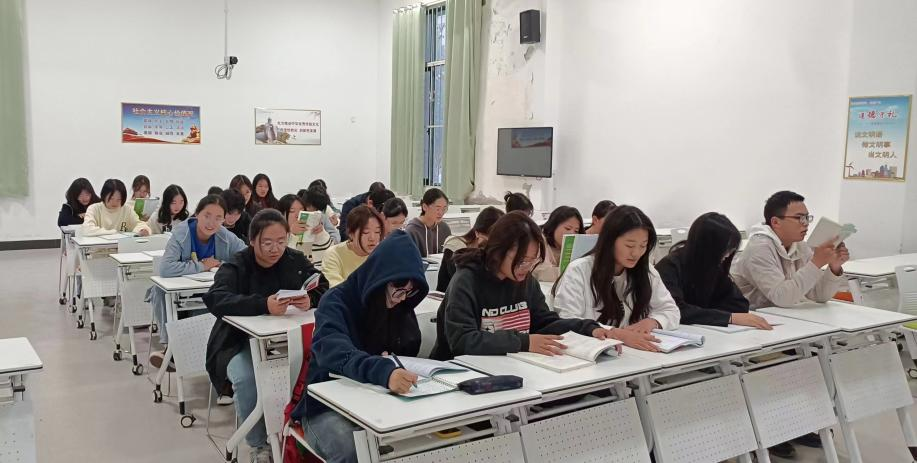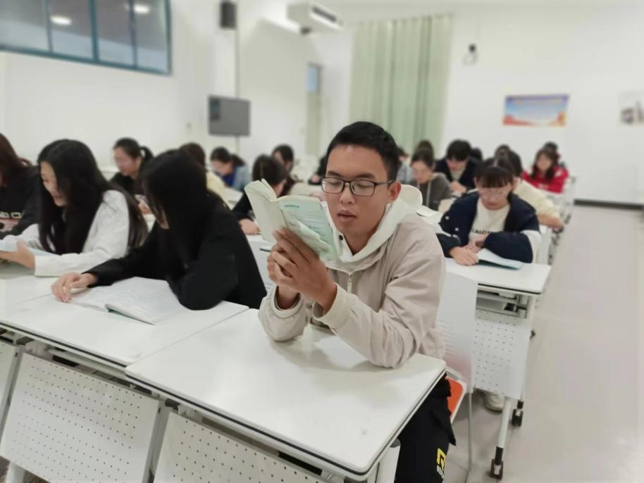 本次晨读月活动面向为大一全体学生。早上六点半,伴着晨光熹微,学生自主选择英语词汇、专业教材、红色经典等书籍朗读,晨读教室学习氛围浓厚,学习效果良好。