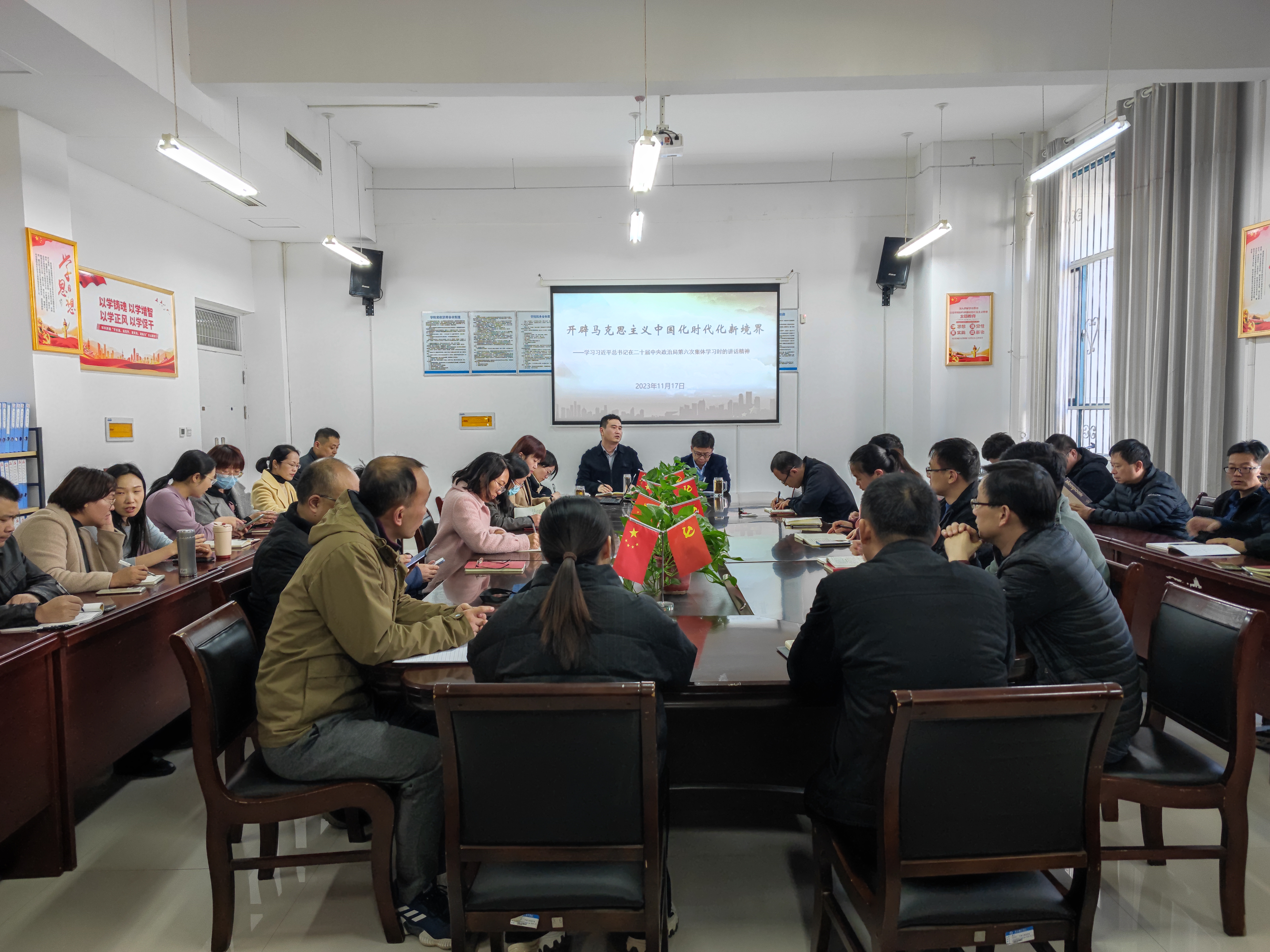 11月17日,beat365正版唯一官网于三商楼134会议室开展专题政治理论学习,学院全体教职工参与学习。