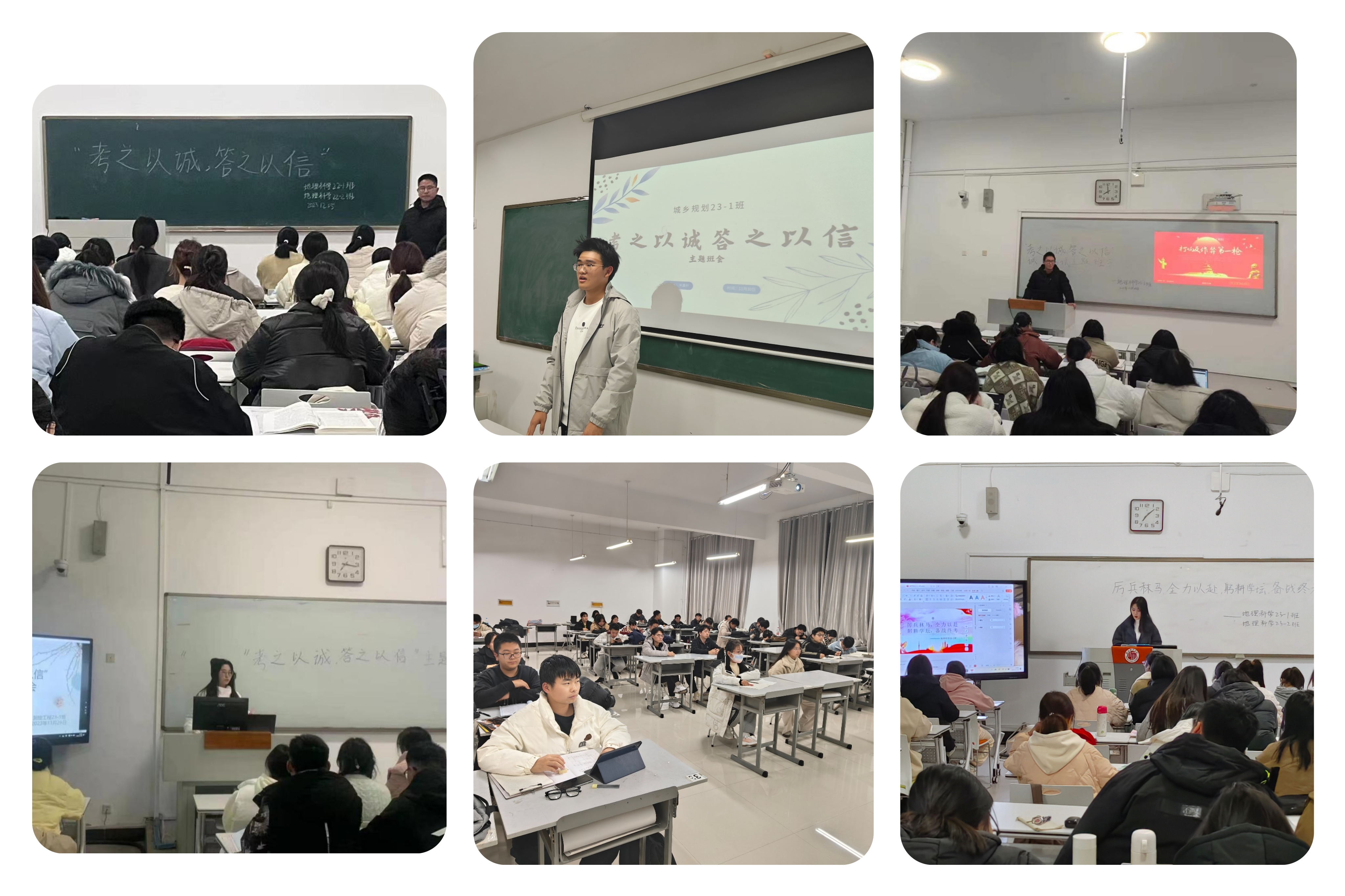 为了引导同学们树立正确的考试观念,营造风清气正的考试氛围,11月30日-12月10日,beat365正版唯一官网各班级召开“考之以诚,答之以信”诚信考试主题班会。本次班会由各班班主任主持召开。