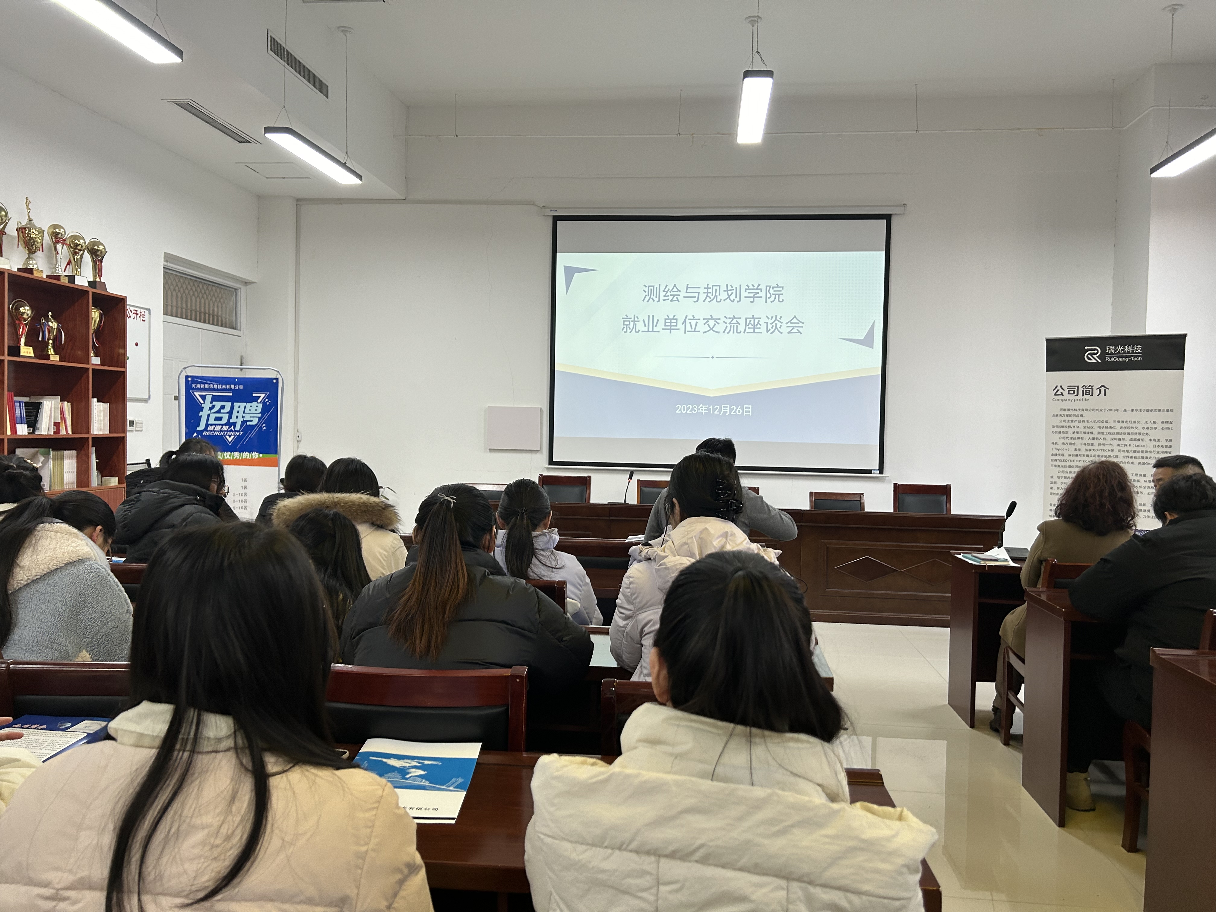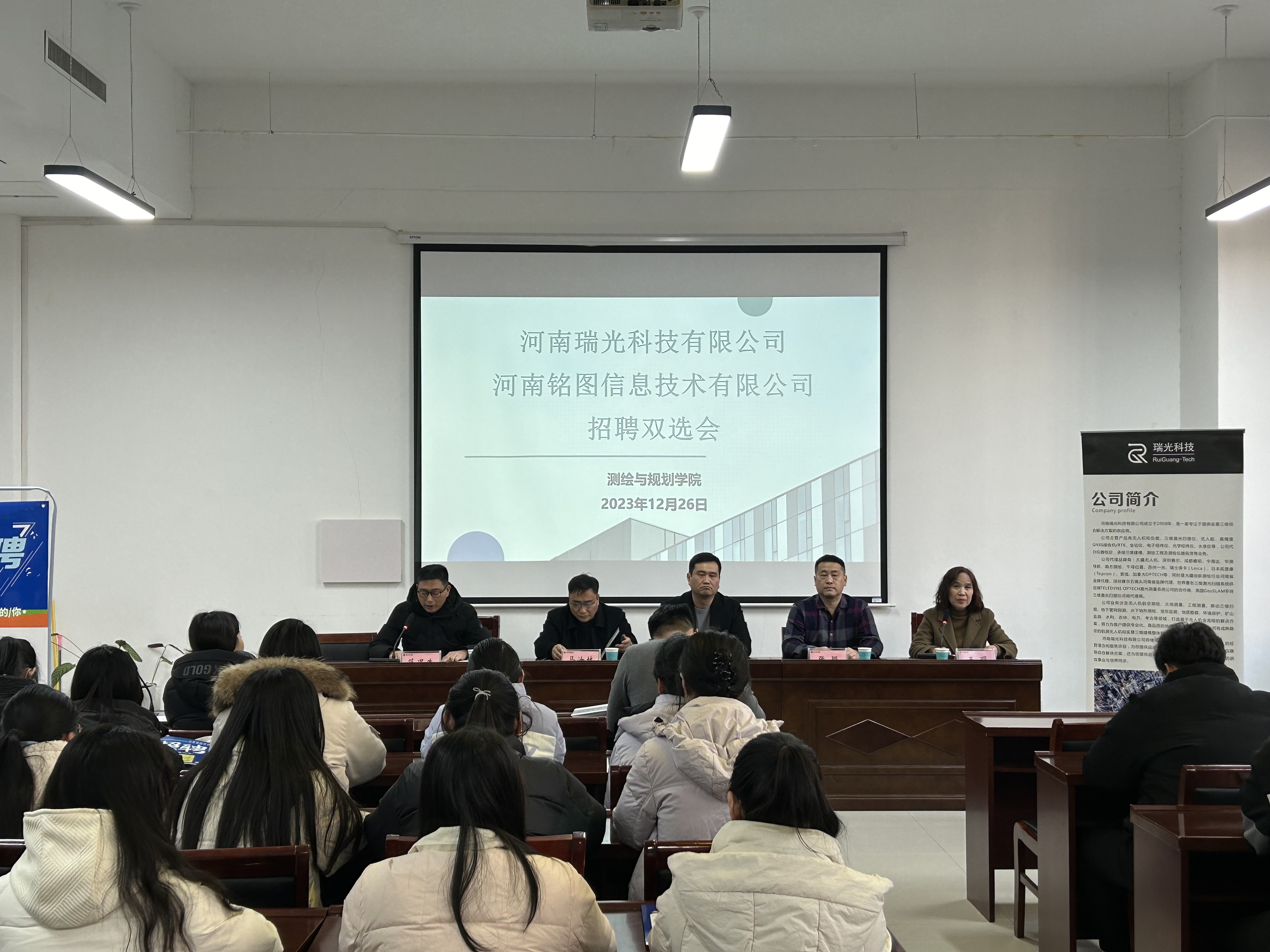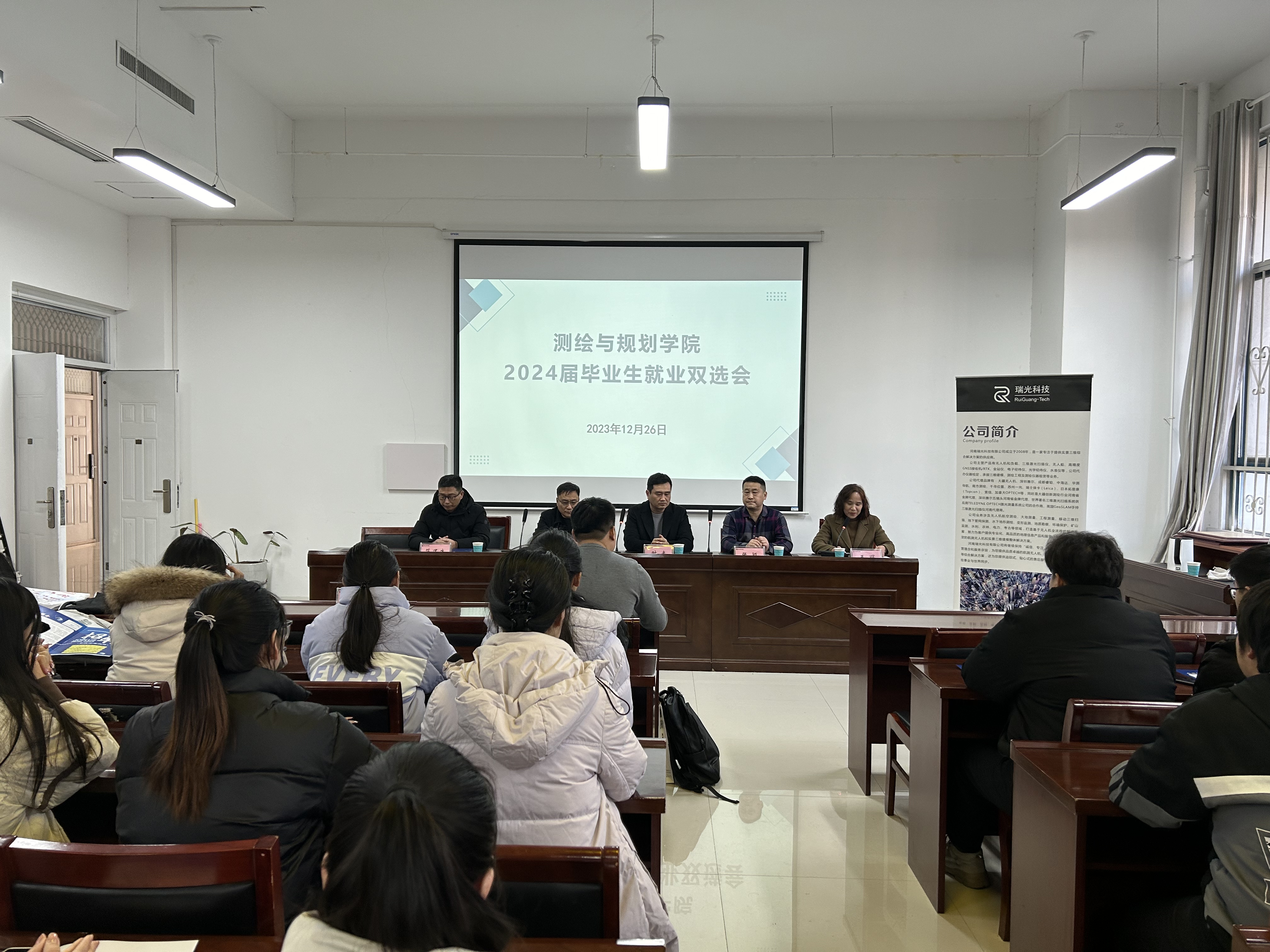 为促进beat365正版唯一官网2024届毕业生高质量充分就业,12月26日,beat365正版唯一官网于三商楼112举办了双选招聘会暨用人单位座谈会。beat365正版唯一官网党委书记时光、党委副书记王丽、副院长范况生出席了本次会议。参会的还有河南瑞光科技有限公司董事长张颖、总经理杨光,河南铭图信息技术有限公司总经理马汝林、副总经理卢星红及beat365官网部分2024届毕业生。