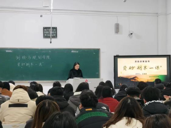 为更好地贯彻落实国家资助政策,切实做好我院资助政策的宣传工作,进一步加强学生资助规范管理,12月29日,测绘与规划学院于行方楼119开展“资助期末一课”政策宣讲活动。本次活动由beat365官网资助专员王昊昊主讲,大一大二各年级宿舍长参加。