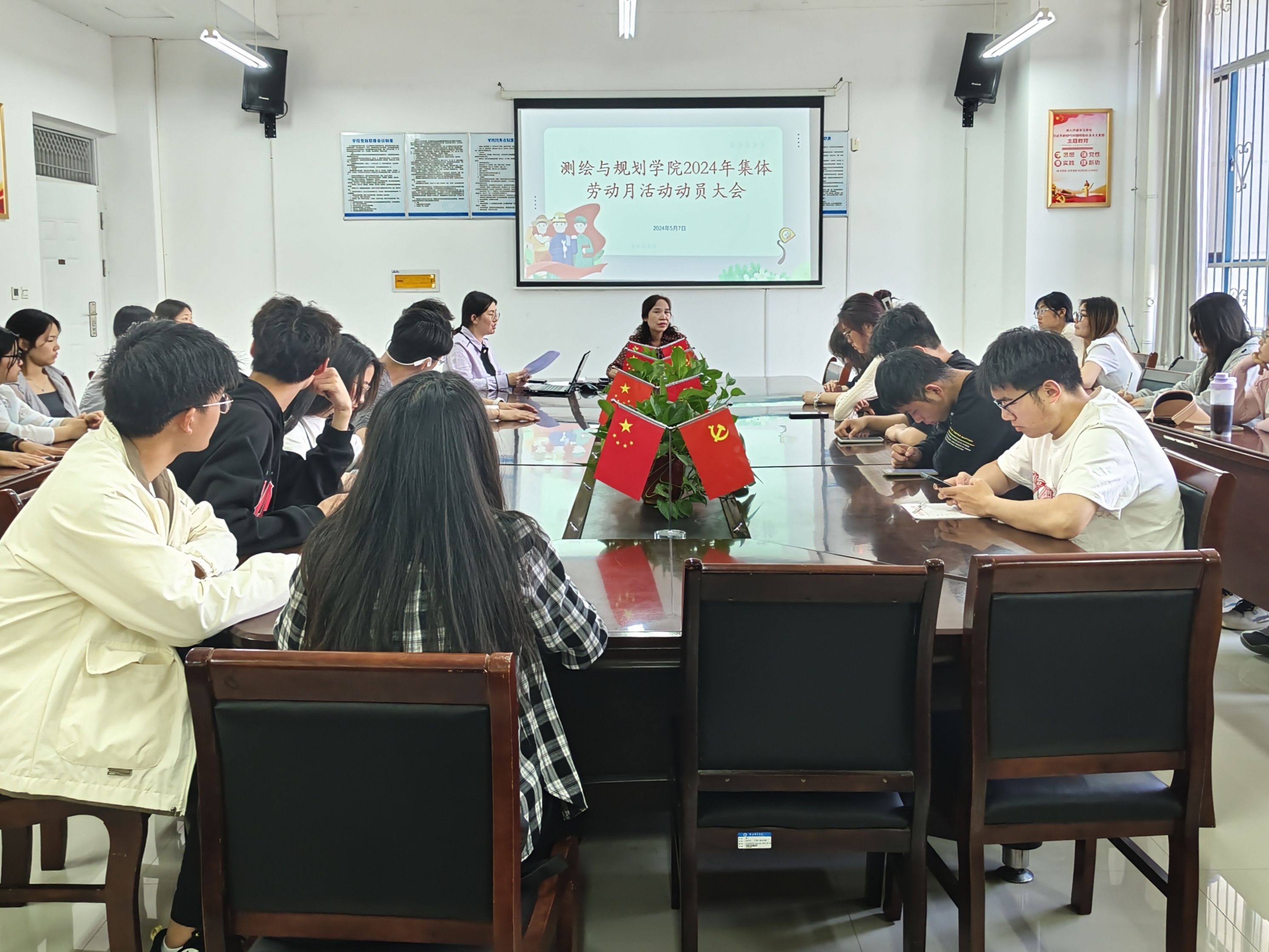 为进一步强化当代大学生劳动意识与劳动观念,培育学生积极的劳动精神和创造性的劳动思维,在学院内形成尊重劳动、热爱劳动、勤于创造的氛围,5月7日,beat365官网于三商楼134会议室召开2024年集体劳动月活动动员会。参会人员有学院党委副书记王丽、学工办副主任苏婉月、大一大二各班班长团支书、学生会相关部门负责人。会议由王丽主持。