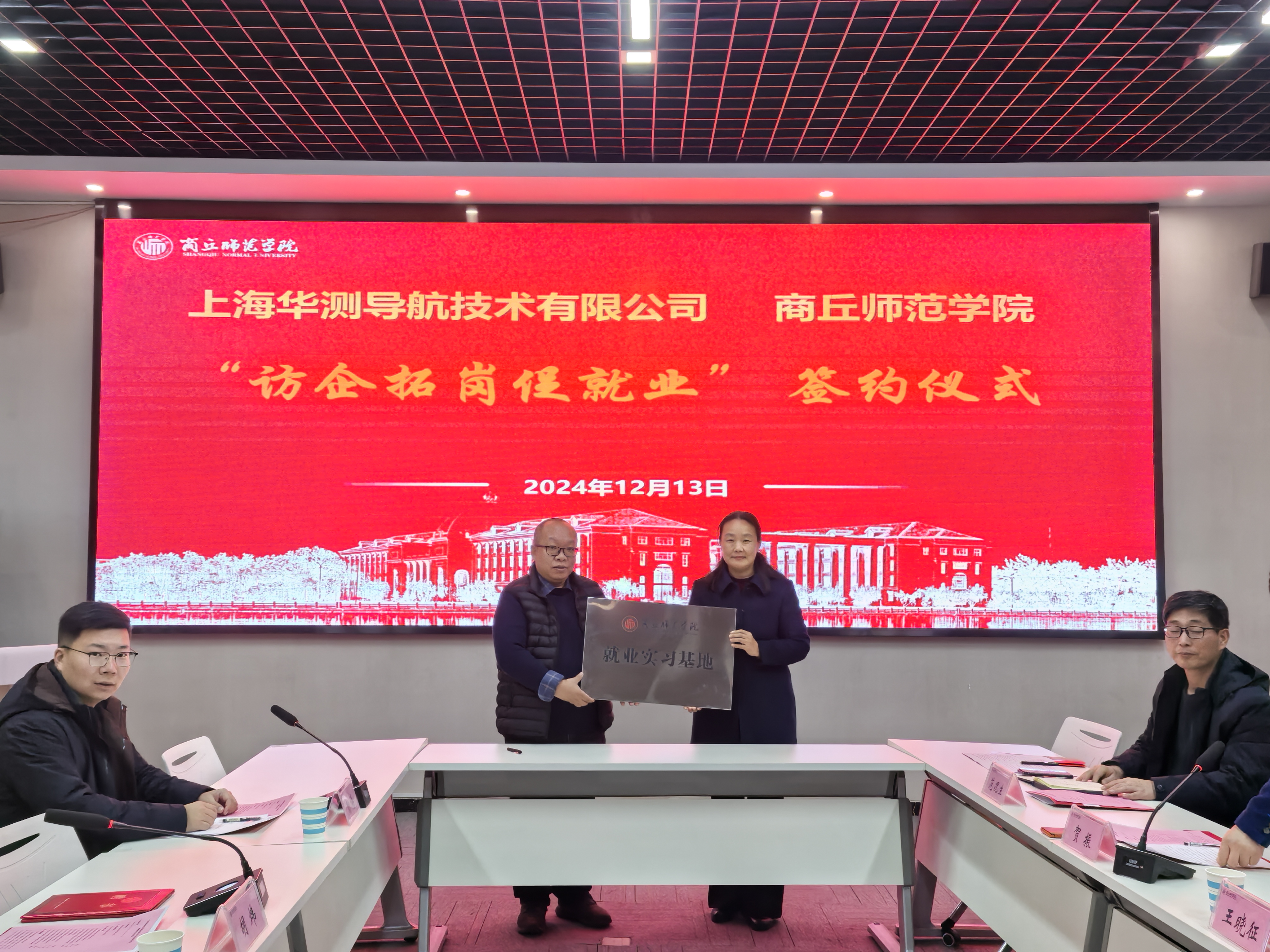 最后,王晓征、胡炜分别代表beat365正版唯一官网与上海华测签订了《beat365正版唯一官网大学生就业实习基地协议书》并举行了就业实习基地授牌仪式。