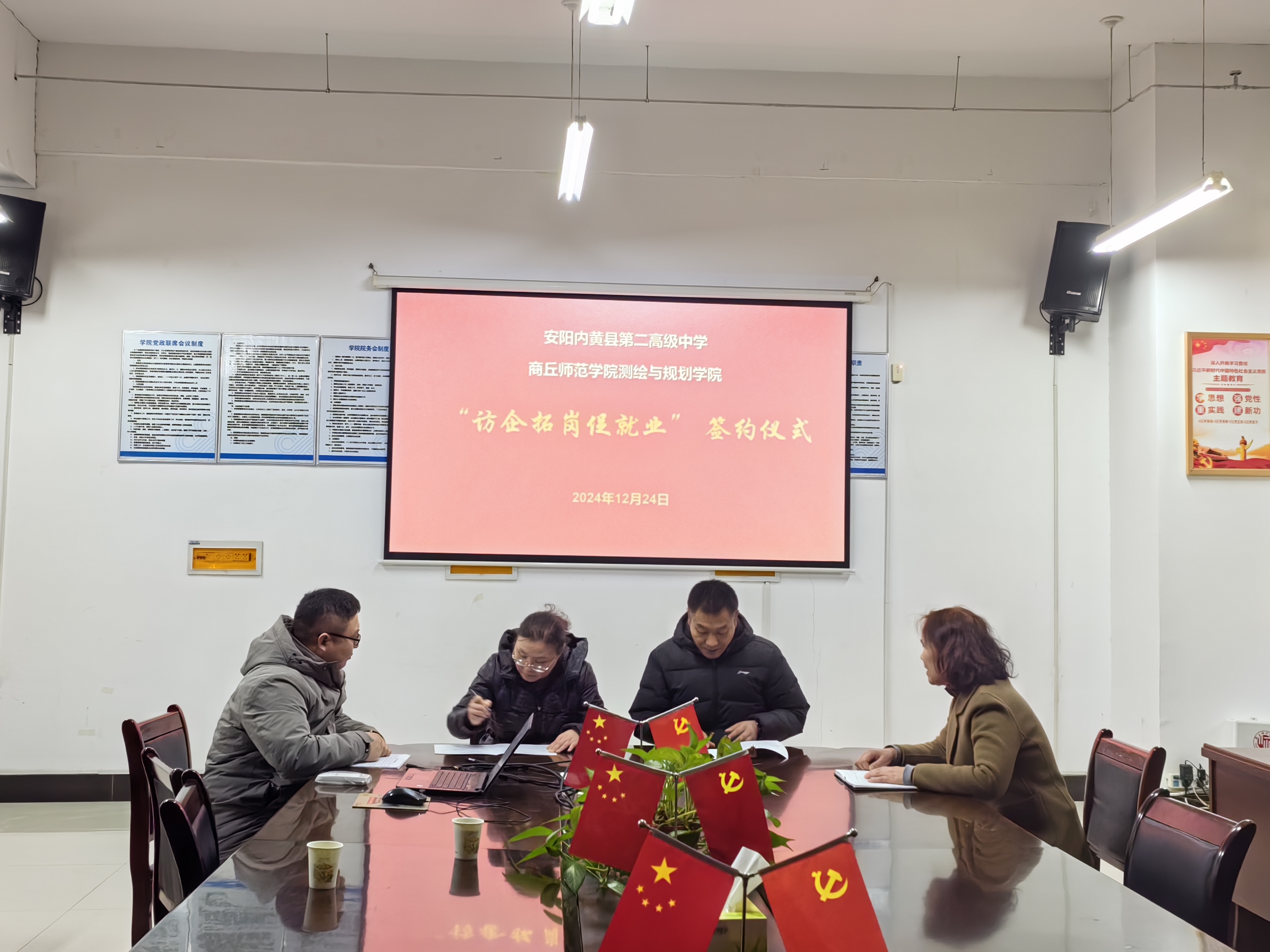 为深入贯彻落实党中央、国务院关于“访企拓岗促就业”专项行动工作部署,拓宽毕业生就业渠道,12月24日下午,beat365正版唯一官网邀请内黄县第二高级中学(以下简称“内黄二高”)赵威豫老师一行两人到beat365官网开展“访企拓岗促就业”专项行动暨地理科学专业招聘宣讲会。学院领导班子成员、毕业班辅导员、2025届地理科学专业毕业生参加活动。