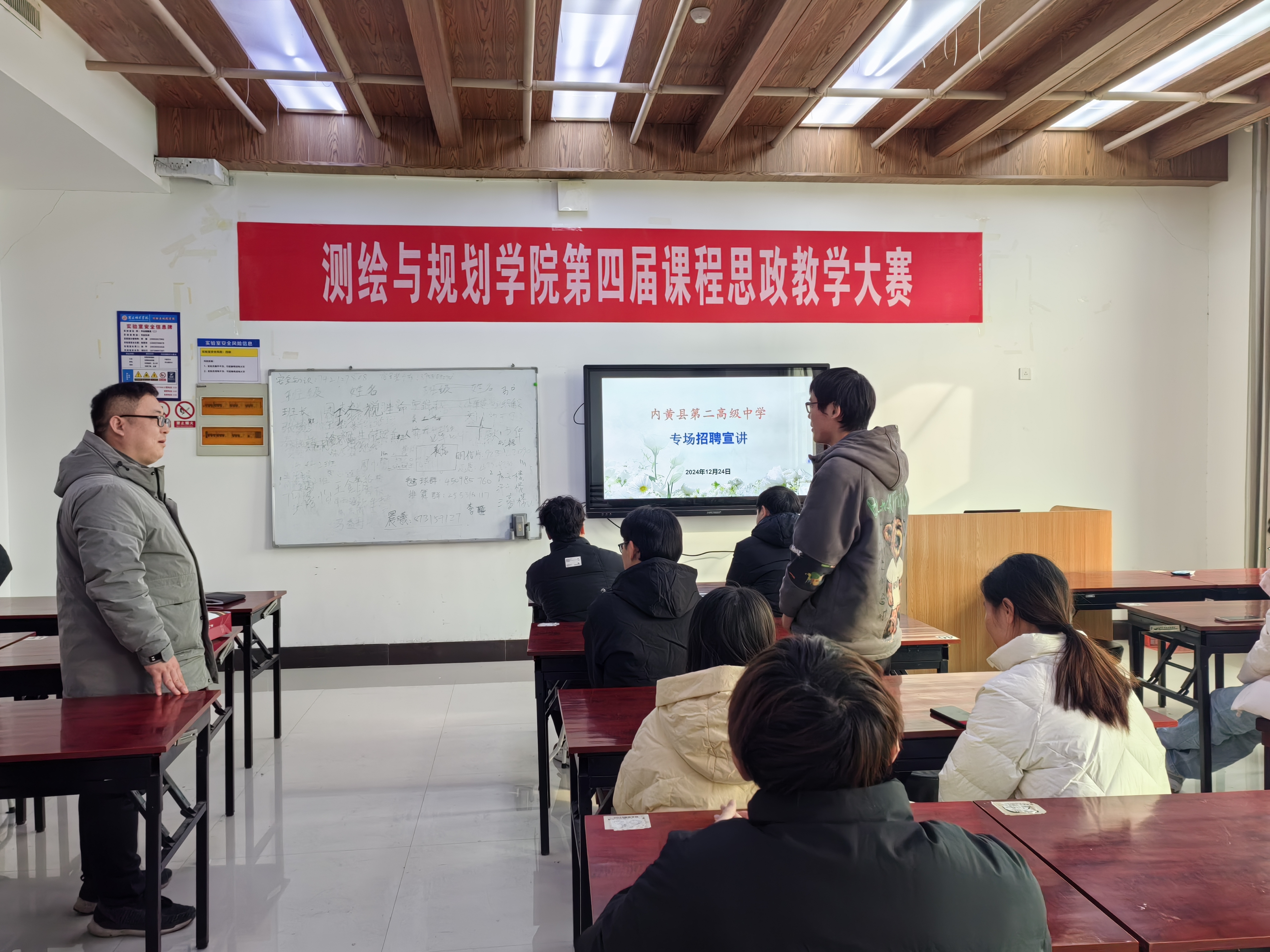 随后,内黄二高一行面向beat365官网2025届地理科学专业毕业生开展招聘宣讲。围绕学校概况、师资力量、硬软件设施、招聘要求及待遇福利等,双方展开详尽的交流。到场的毕业生进行了简单的自我介绍并表明了到贵单位求职意愿。最后,经协商,面试试讲环节将在线上进行。
