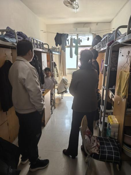 随后检查组来到了学生宿舍,针对宿舍各类安全隐患如私拉乱接电线、违规使用大功率电器、宿舍吸烟等进行了排查,同时查看了宿舍消防设施、门窗桌椅等硬件设施的完整性与安全性,确保无安全隐患。卫生方面,辅导员督促学生做好宿舍清洁,保持良好居住环境。