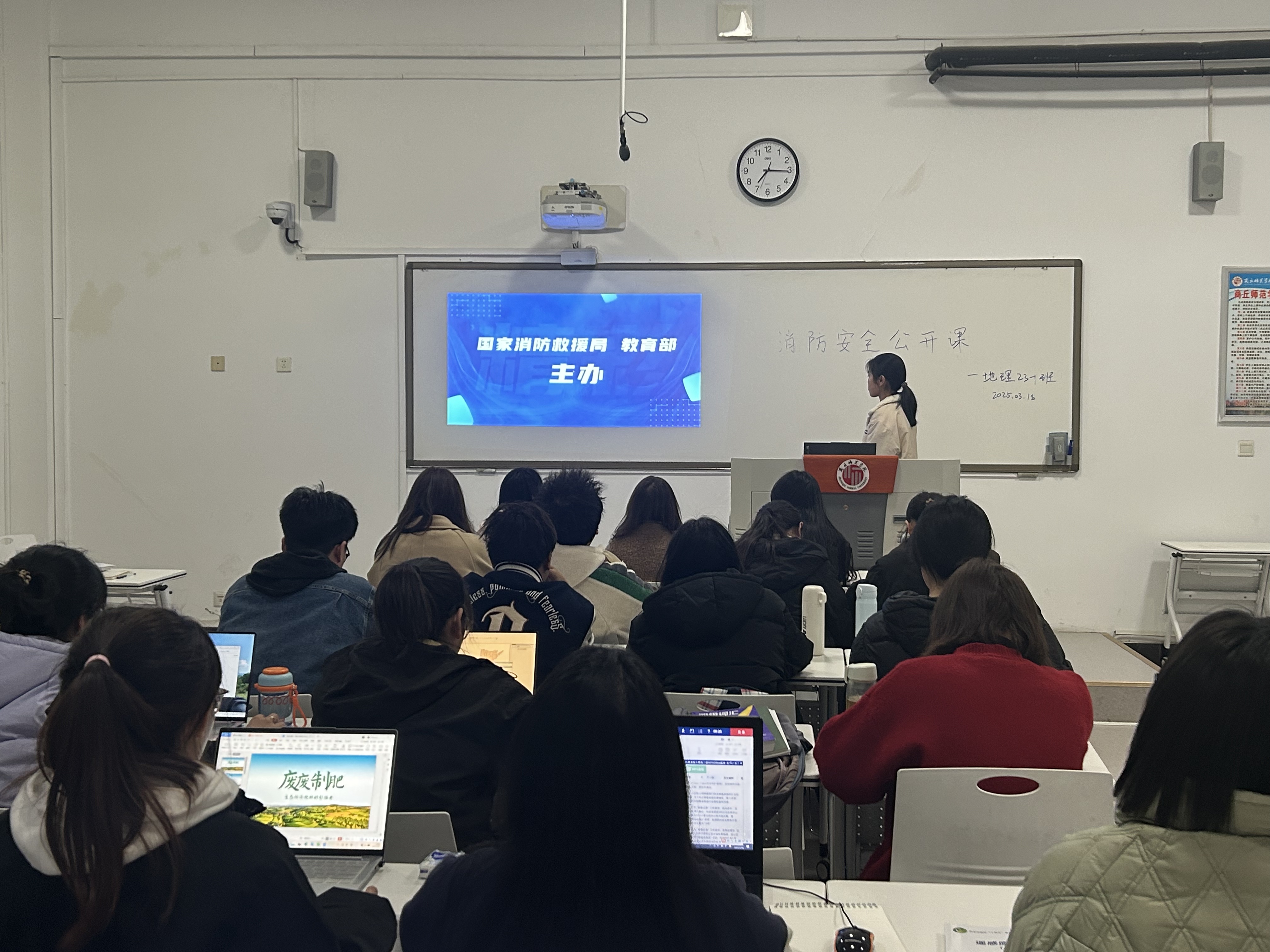 为提高同学们的消防安全意识,普及消防安全知识,掌握必要的逃生技能,3月18日,beat365官网组织各班学生观看了由教育部、国家消防救援总局联合举办的2025年春季全国高校消防安全公开课。
