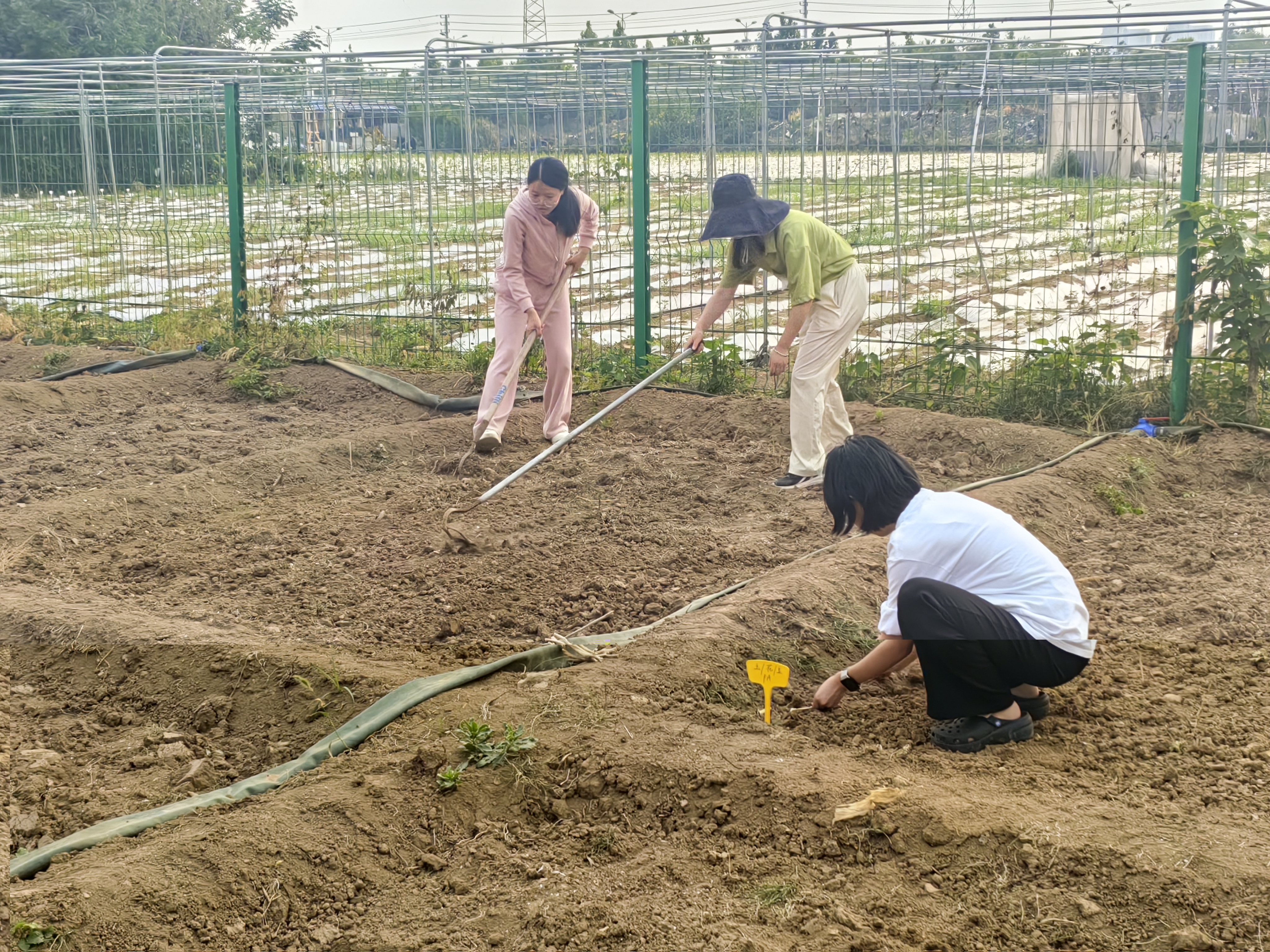 王丽代表学院与智慧生态园林开发中心负责人丁锦平共同签署beat365正版唯一官网劳动教育实践基地协议书并向丁锦平授牌“beat365正版唯一官网大学生劳动教育基地”。随后,丁锦平带领大家参观了并向大家讲解了中心内各类植物的种植技术、培育重点、观赏方法与艺术价值等养护技术要点。最后,学生们在田地里开展了种植培育活动。