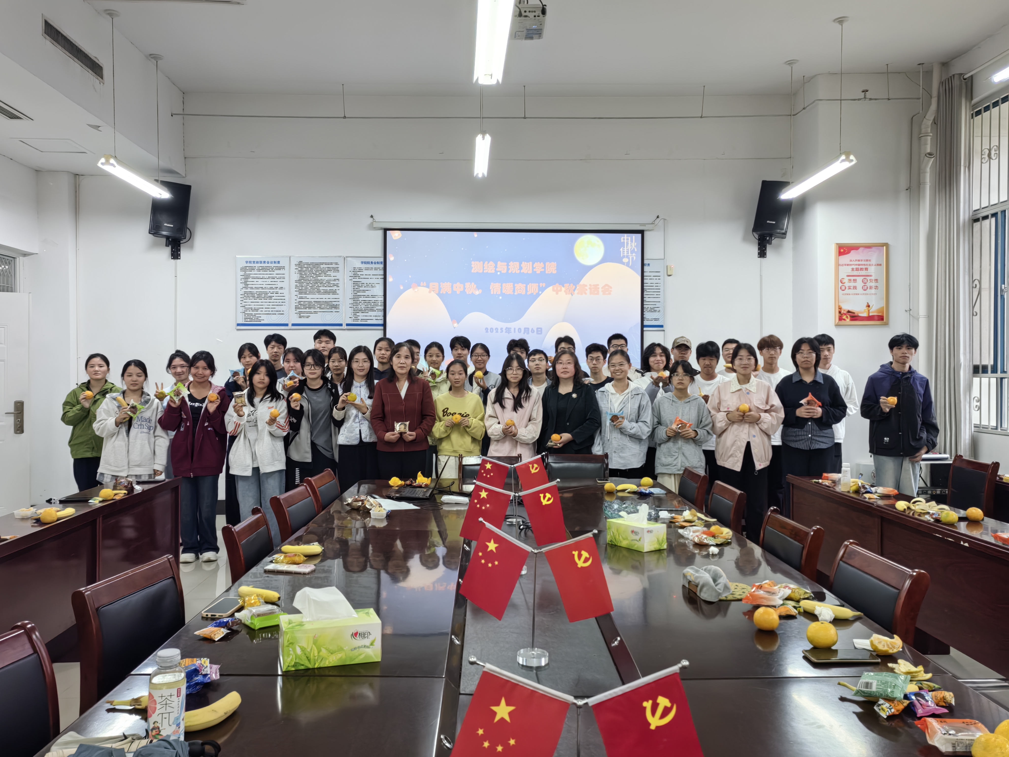 10月6日,beat365正版唯一官网于三商楼134会议室举办“月满中秋,情暖商师”中秋茶话会。学院党委书记路利、党委副书记王丽、党政办主任魏理、学工办副主任兼2025级辅导员苏婉月及2025级留校新生欢聚一堂,共庆中秋,共话成长。