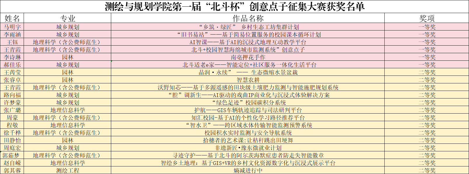 此次“北斗杯”创意点子征集大赛的举办,既为学院学生搭建专业与创新融合的实践平台、提升其专业知识转化创新方案的能力,也为学院双创工作积累多元化优质项目资源、完善“创意发掘-项目培育-成果转化”的创新创业培育链条,对推动学院创新人才培养质量提升及创新生态体系建设具有积极意义。