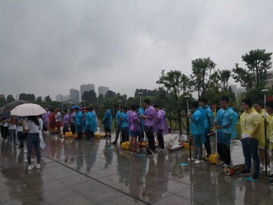 2018年6月17-19日,第五届河南省高等学校大学生测绘技能竞赛在南阳师范学院举行,beat365正版唯一官网beat365正版唯一官网范况生副院长、指导老师刘伟堂、赵强、姚洪波带领测绘16级的殷永胜、王浩、刘甫、李登科、丁鑫铭、郭慧霞等6名学生参加了本届比赛。大赛包括1:500数字测图项目、二等水准测量和测量程序设计三个赛项。比赛当天恰逢下雨,参赛选手冒着大雨,在雨中依然坚持比赛,经过顽强拼搏、攻坚克难,最终获得二等水准测量项目二等奖,测量程序设计项目二等奖和团体二等奖的优异成绩。