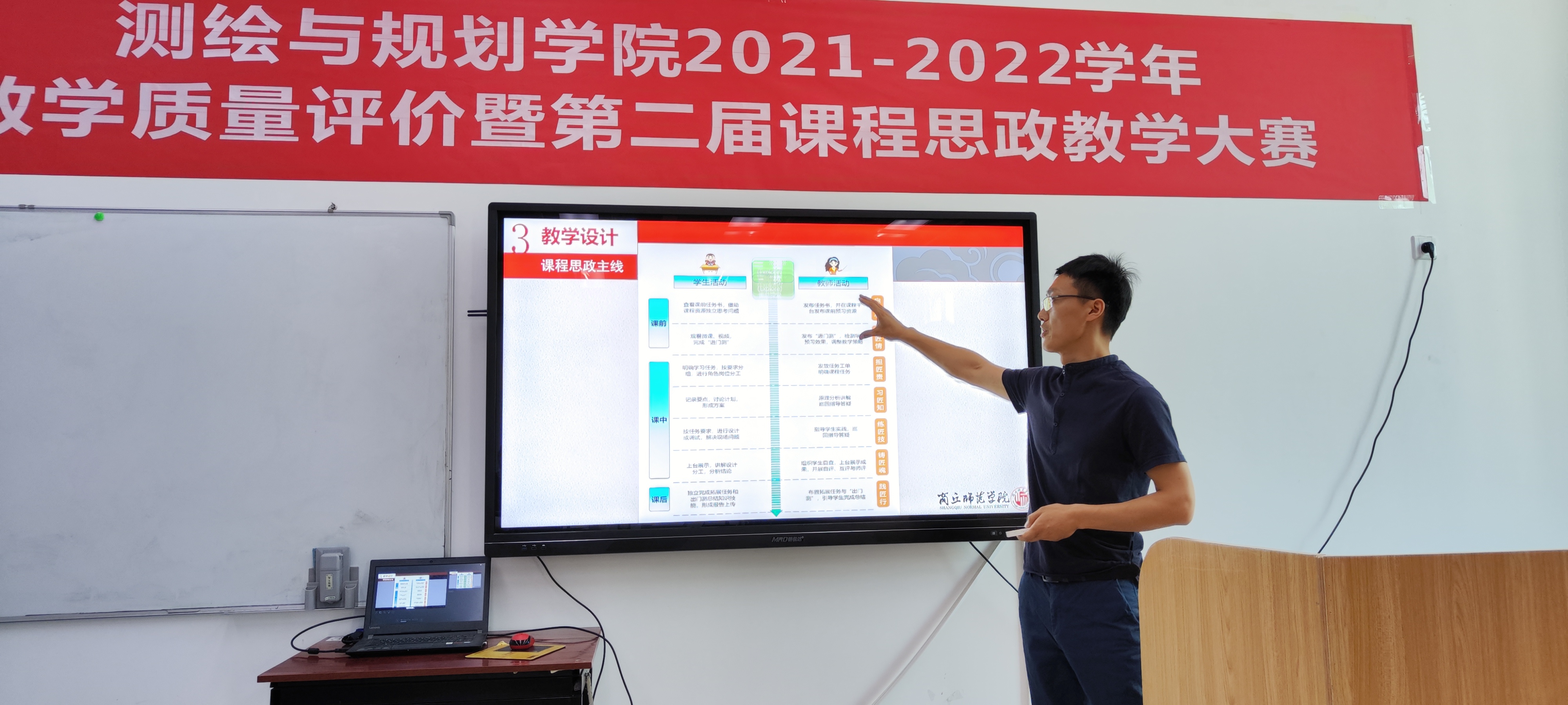 本次比赛分为两个环节进行,赛前所有参赛教师提交一节课(50分钟)的教学设计(教案),然后分别进行20分钟的现场教学,展示课堂教学融入思想政治教育的思路、方法和效果。各参赛教师赛前精心准备、授课思路清晰、教学内容引人入胜,巧妙地将专业知识与思政教育有机融合到一起,做到“润物细无声”,充分展示了beat365官网教师课程思政水平。
