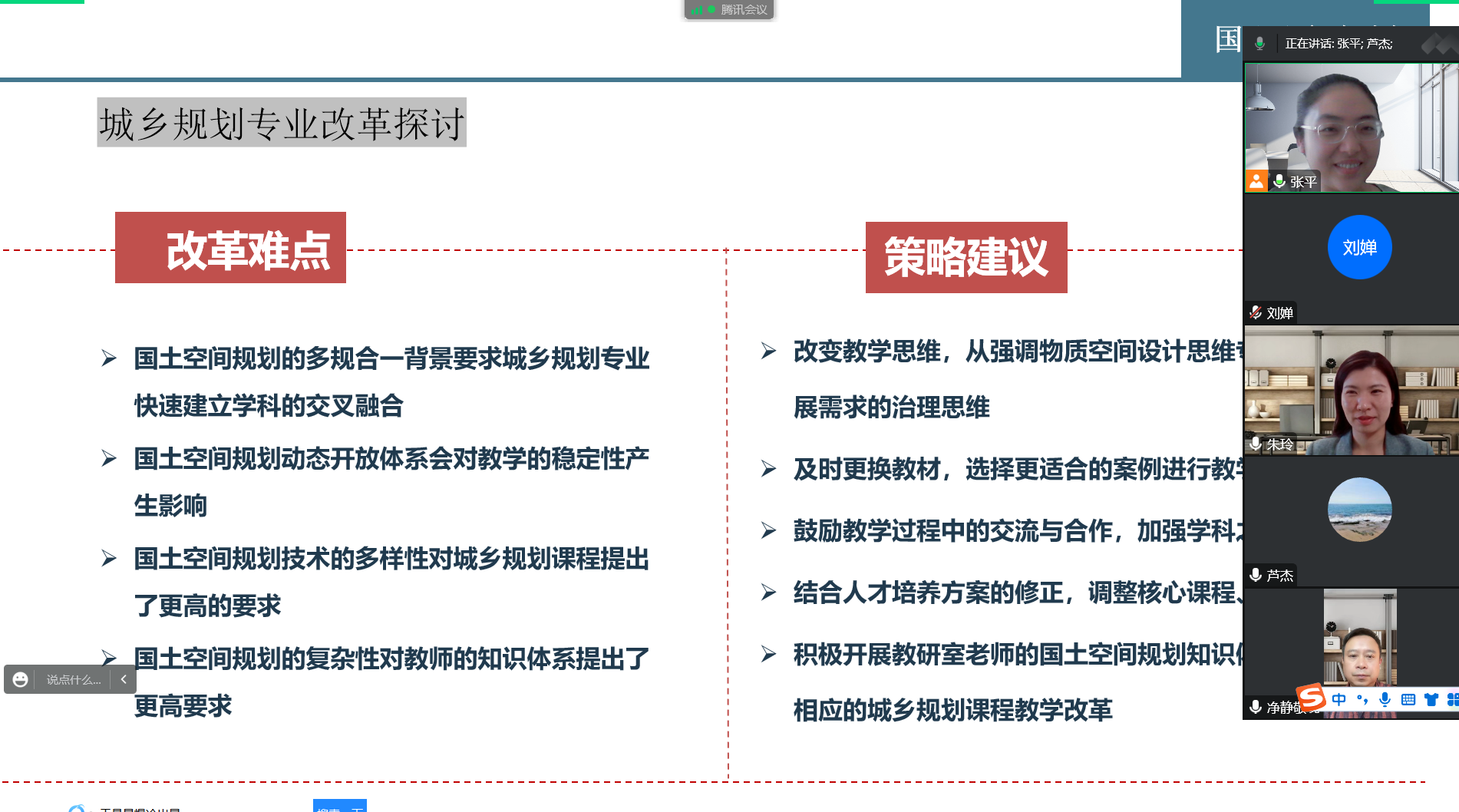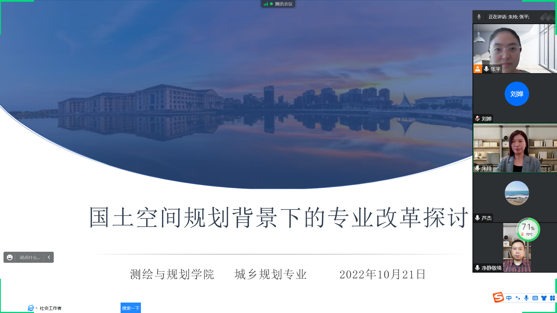 2022年10月21日下午两点半,beat365正版唯一官网城乡规划教研室组织开展了“国土空间规划背景下的专业改革探讨”主题教研活动,该会议因为疫情原因采用腾讯会议线上进行,本次会议由张平老师主持,城乡规划专业全体教师参加。