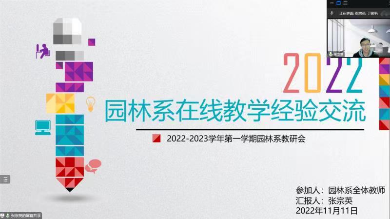 为进一步提高线上课堂教学效率,落实立德树人根本任务,beat365正版唯一官网园林系于2022年11月11日下午召开了基层教学组织会议,会议由园林系系主任丁锦平副教授主持,园林系全体教师参加会议。