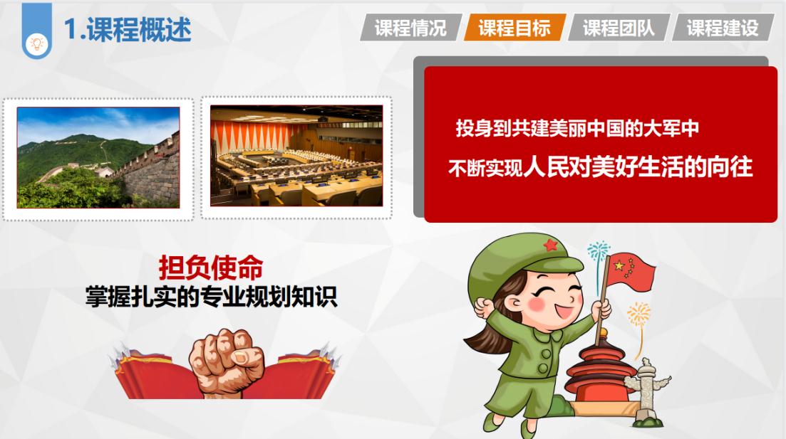 张平老师对二十大报告中对于国土空间规划的指引进行学习,明确在国土空间规划的编制与实施管理中如何坚定新时代的工作目标,推进新发展的空间格局,建设新理念的绿色中国。美丽中国,规划先行,新时期的规划人不忘初心和使命,努力绘制好新征程的国土规划蓝图。激发学生的爱国主义、社会主义精神,以及作为规划师的责任感与使命担当。