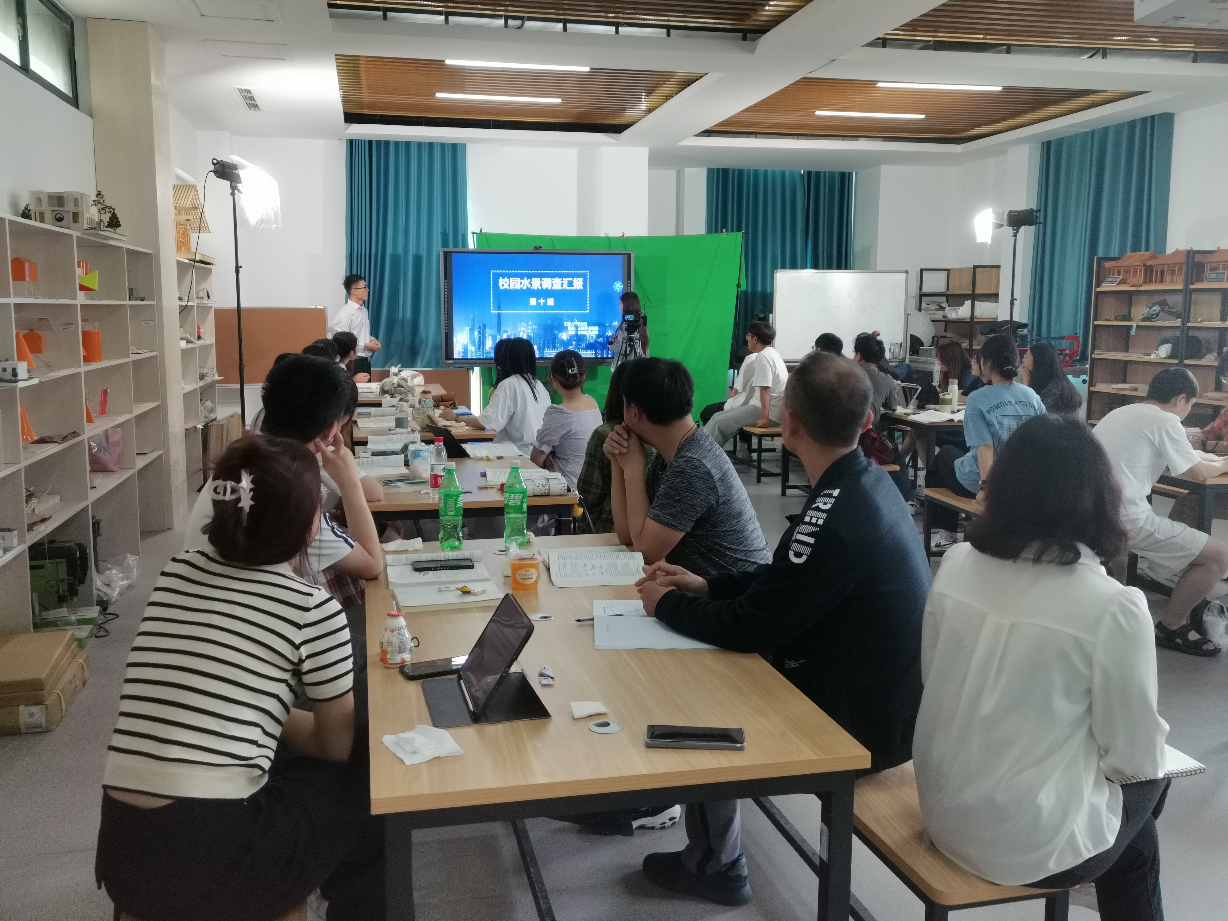 张宗英以“喷泉水池”为核心内容,采用校园内实践项目案例、课前学习任务驱动和小组合作探究等教学设计,进行了教学内容讲解。课堂教学中采用智慧化教学模式,学生汇报过程、学生点评和教师点评内容等教学活动全过程记录,并上传到学习平台随时可以翻阅回看。