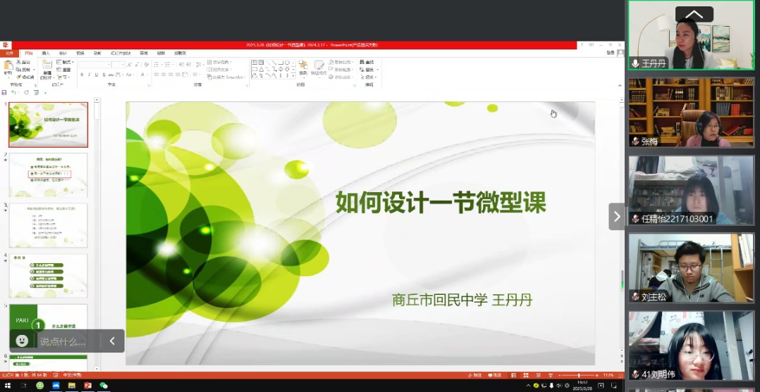 为帮助学生掌握微型课设计技巧,提升教学实践能力。2025年3月28日晚上,“互联网+”中学地理工作王丹丹老师为地理科学专业学生开展了一场主题鲜明、内容丰富的微型课设计讲座。2022级地理科学专业全体学生参与此次讲座。此次讲座由张梅老师主持。
