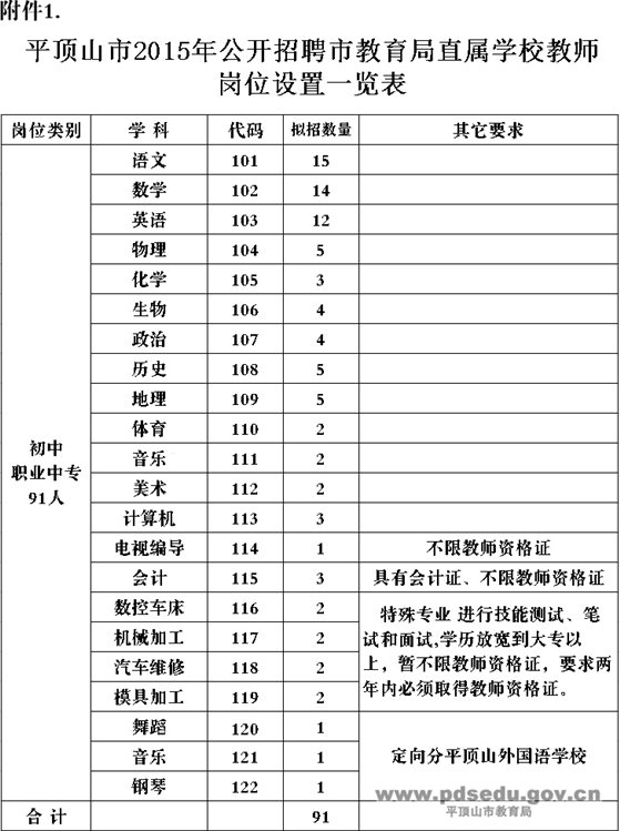 附件:1. 平顶山市2015年公开招聘市教育局直属学校教师岗位设置一览表