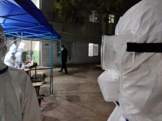 今天是2021年11月2日星期二,严峻的疫情对每个人都是一种考验,对抗疫前线的我们来说,更是一次战斗力的检验。三轮核酸检毕,刚刚从快节奏的工作状态中抽离出来,突然收到第四轮检测的紧急通知,我们几个“抗疫新兵”随即穿好防护服,便进入工作状态。应检尽检,刻不容缓,开展多轮次高效率的核酸检测就是为了及时排除隐患,我们必须足够快才能跑赢病毒,让身边的人放心。