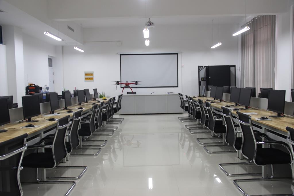 空间位置服务实训室侧重于对卫星、无人机等航空航天测量手段获取的数据进行处理和实训等工作,是北斗学院下设实习实训重点实验室之一,主要实验仪器有哈瓦工业级四轴八旋翼无人机一架、五镜头倾斜摄影系统一套、无人机地面站系统一套、高性能图形工作站6台、联想ThinkVision实验电脑35台,实验软件主要包括三维建模软件ContextCapture、GIS平台软件ArcGIS、倾斜摄影建模测量系统DP-Modeler、清华山维EPS等先进的专业软件,以及3D Max、AutoCAD、CASS、PhotoShop等常规工程类软件。能满足测绘、遥感、地信等专业同学进行空间位置服务相关实习实训任务。