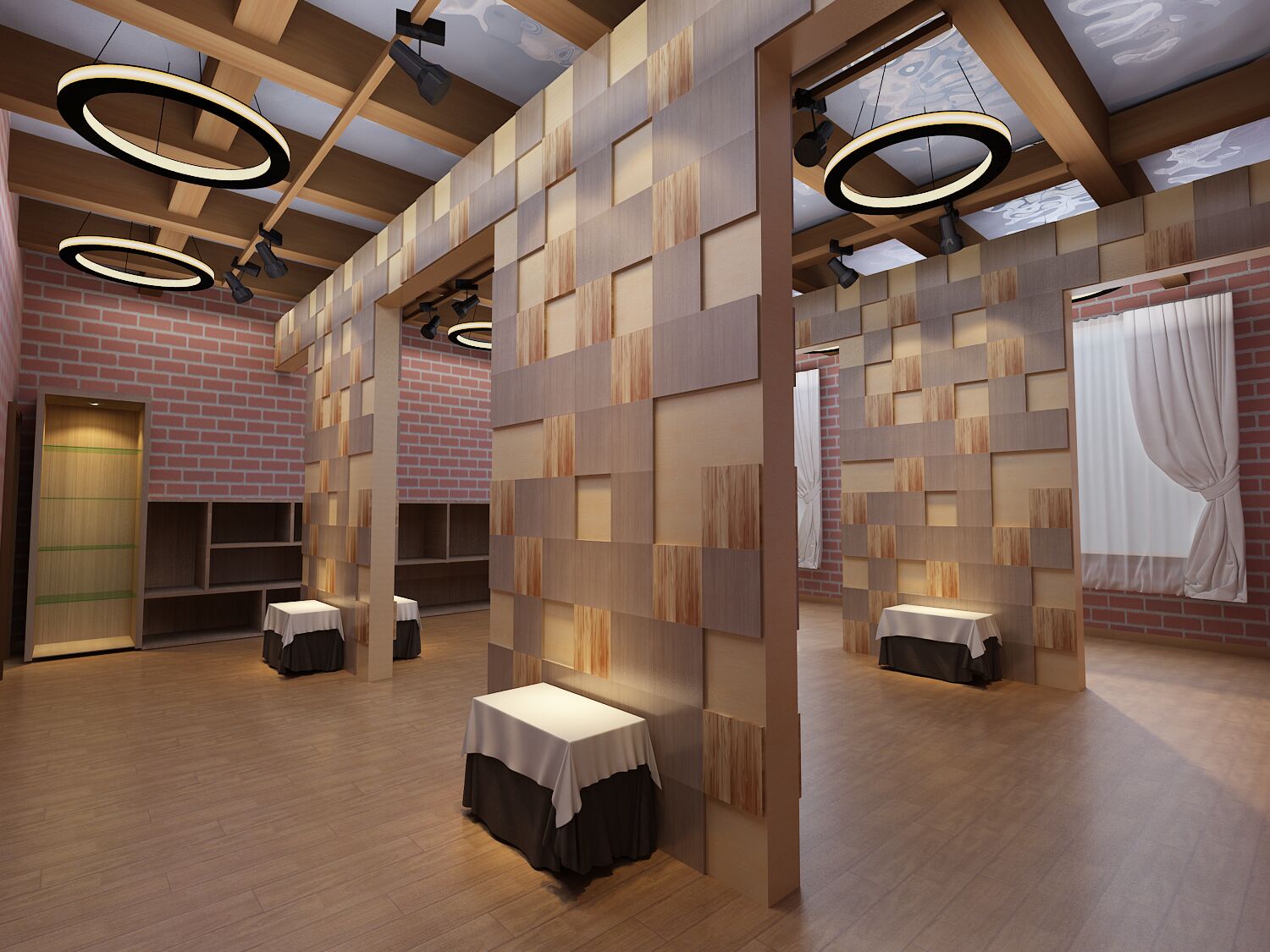 专业画室场地面积约80平方米,通过设计2个隔板夹层,将石膏体景物组合分为4组,避免了学生在绘画布局选择上的单一性和重复性,多了一些选择性和可塑性;并在隔板两侧均布置灯光,可根据不同的主题选择光源的方向。配备的设备主要有投影仪和桌面实物展台,教师可根据教学内容利用投影机向学生展示图片或视频,目前承接的主要课程有《素描》、《色彩》、《钢笔速写》、《快速表达》等。