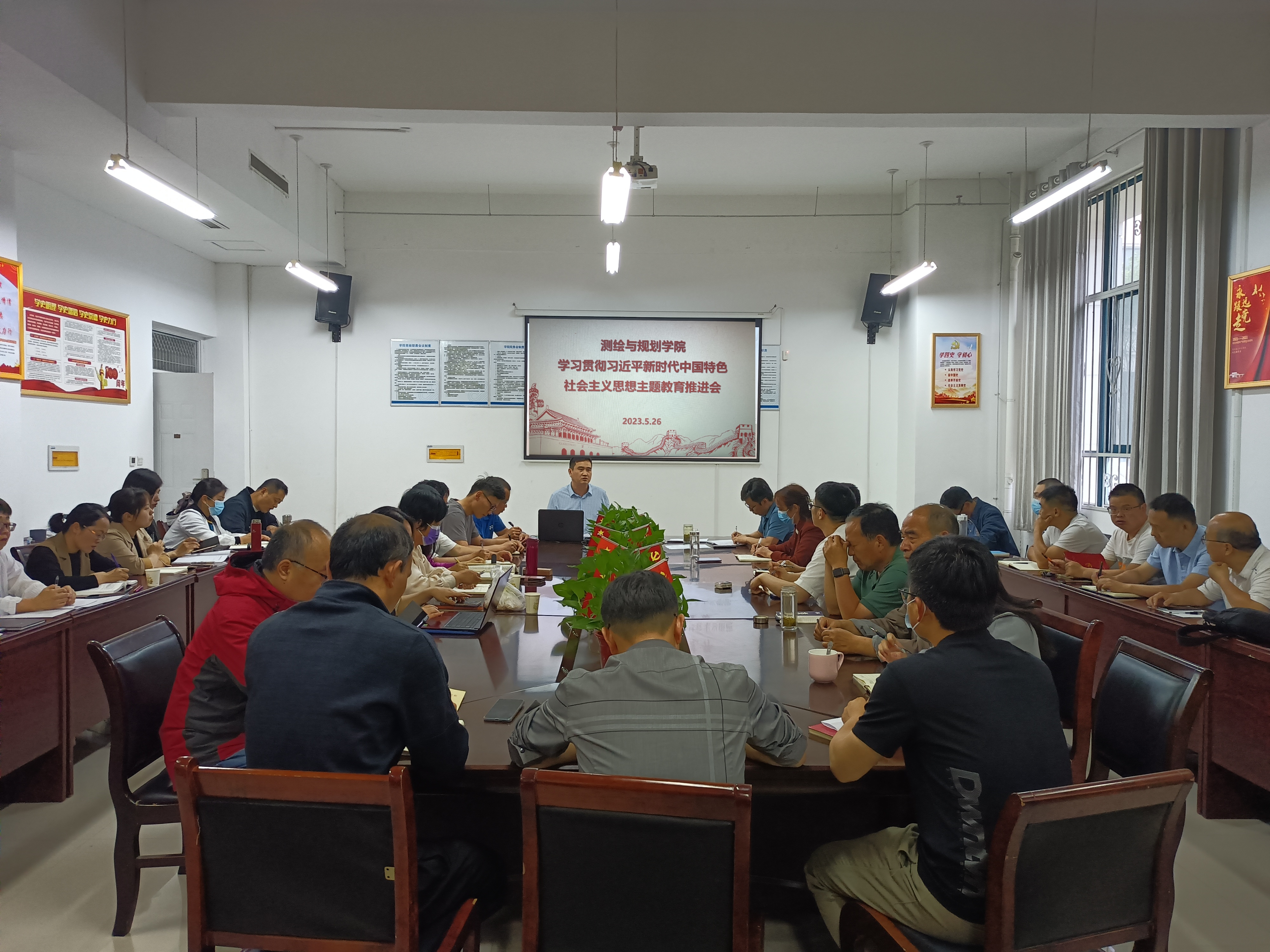 5月26日,beat365正版唯一官网于三商楼134会议室召开学习贯彻习近平新时代中国特色社会主义思想主题教育推进会,学院全体教职工党员参加会议。