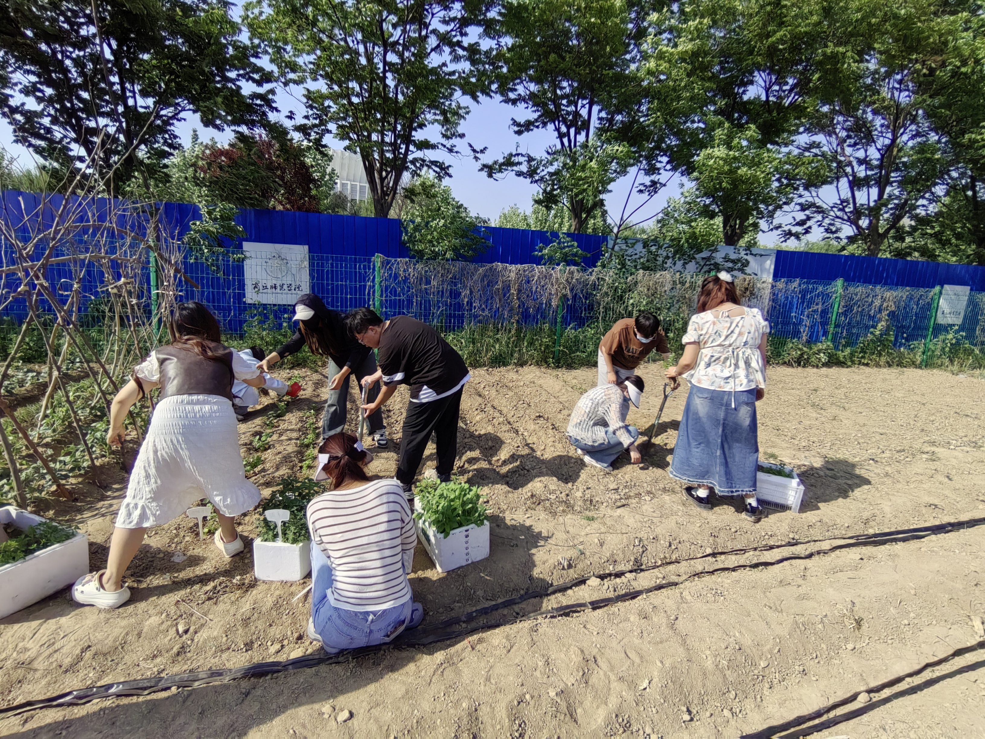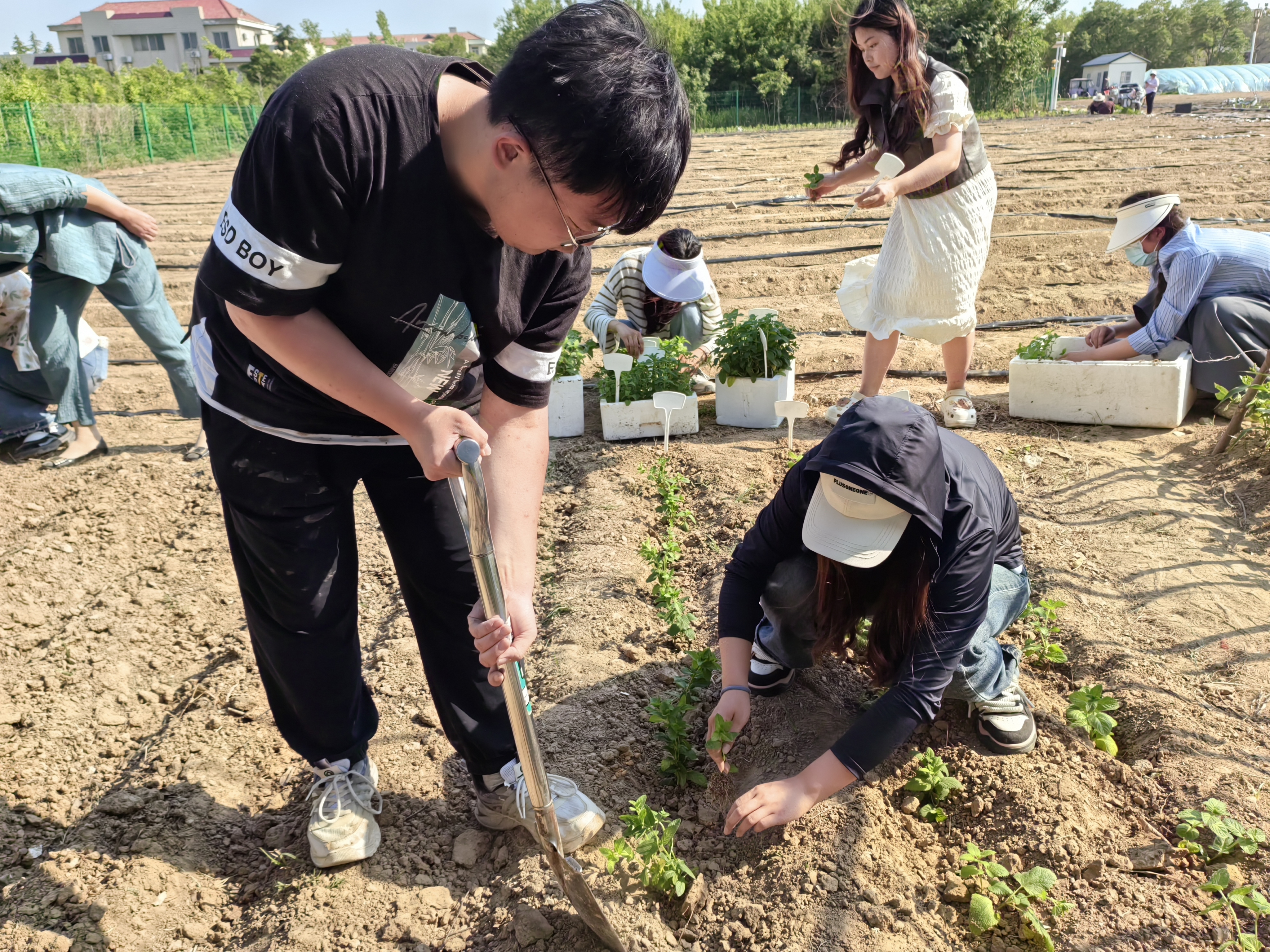 在阳光大棚集合后,大家同心协力将十余种薄荷幼苗培育箱搬至辣椒试验田。随后,王丽亲自教学,以身示范,向同学们传授种苗的经验与技巧。大家分成四个小分队在田地里进行各品类薄荷的种植活动,同志们热情高涨,干劲十足,没有丝毫懈怠。在大家的共同努力下,很快便完成了薄荷幼苗的种植。王丽强调,学生党员在学生群体中是标杆和榜样,应充分发挥模范带头作用,发扬敢担当、能吃苦、肯奉献精神,以饱满的热情和坚定的信念,积极参与劳动实践,提升劳动能力,为党和人民的事业添砖加瓦。