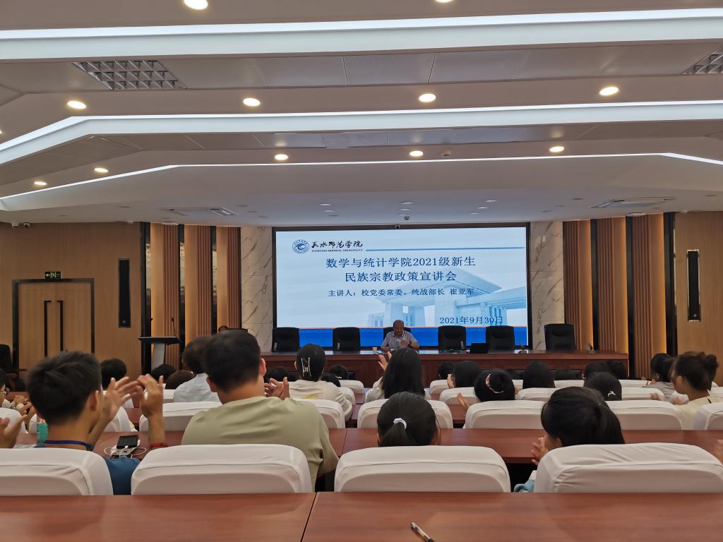 9月30日,学校党委常委、统战部部长崔亚军受邀为新葡萄8883官网amg2021级新生做党的民族宗教政策专题宣讲。学院党总支负责人主持宣讲会,学院党总支副书记、辅导员、班主任、理科预科班全体学生及2021级全体班长、团支部书记、学生代表共100余人参加了宣讲会。