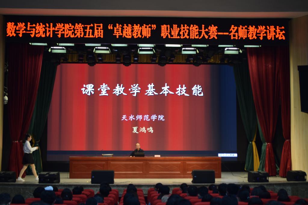 2020年11月12日晚,新葡萄8883官网amg第五届“卓越教师”职业技能大赛第一环节活动——名师教学讲坛在学校大礼堂开展,学院夏鸿鸣教授以《课堂教学基本技能》为主题为现场600余名学生作了专题讲座。