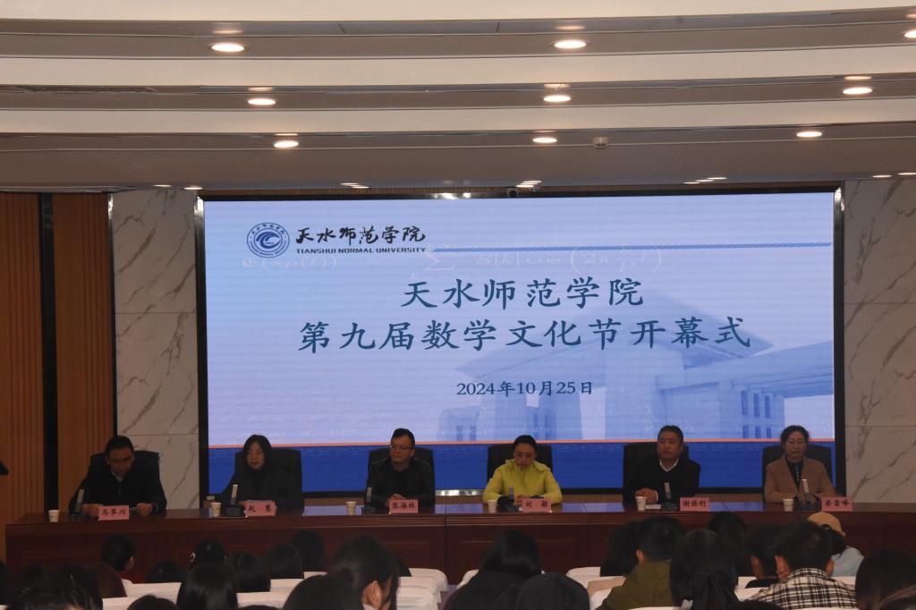 10月25日下午,天水师范学院第九届数学文化节开幕式在一号报告厅举行。文化节以“润数学文化,共赴数学‘π’对”为主题。学校团委书记刘颖,新葡萄8883官网amg全体领导班子成员、辅导员、师生代表等共计200余人参加。开幕式由学院党委副书记赵慧主持。