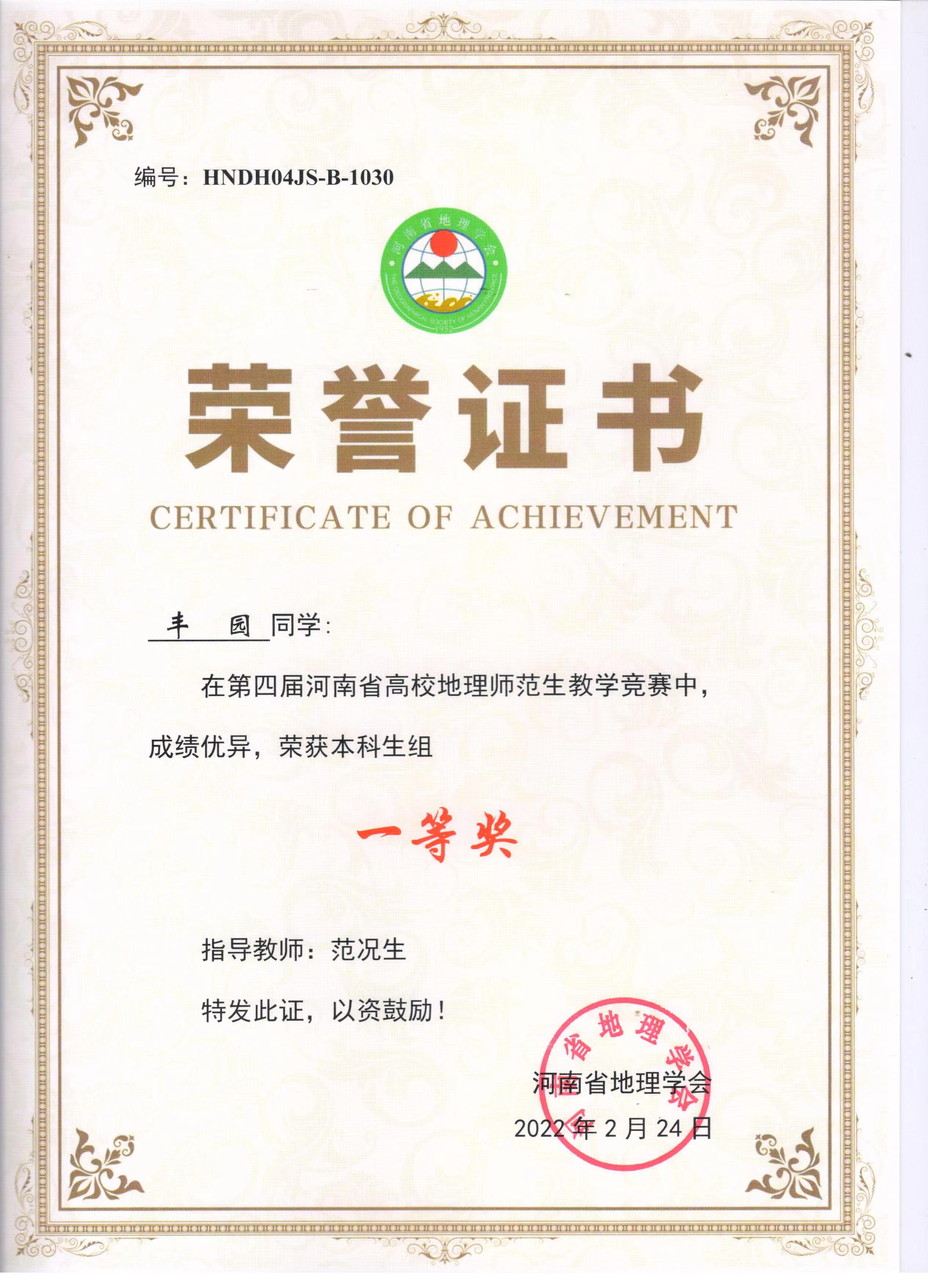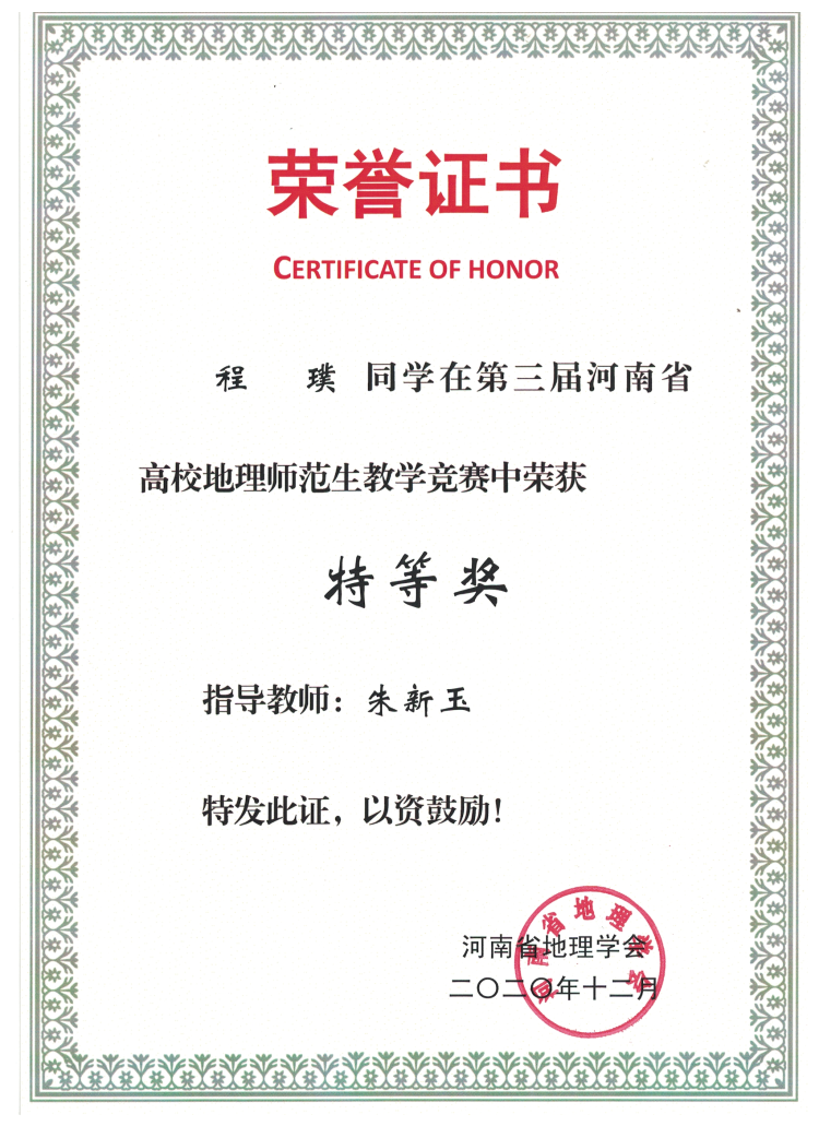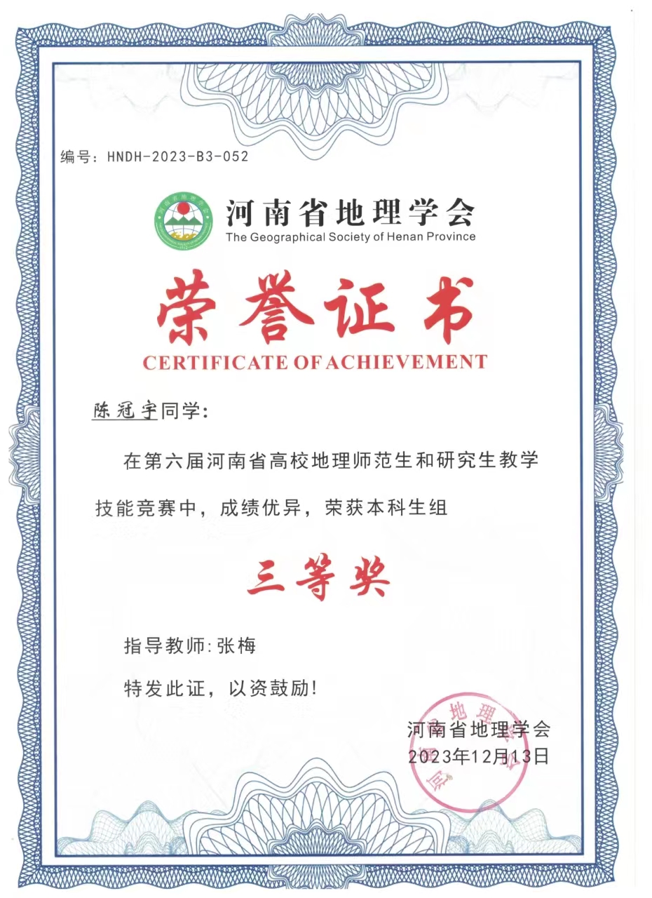 学生参加河南省地理学会师范生教学技能竞赛获奖情况