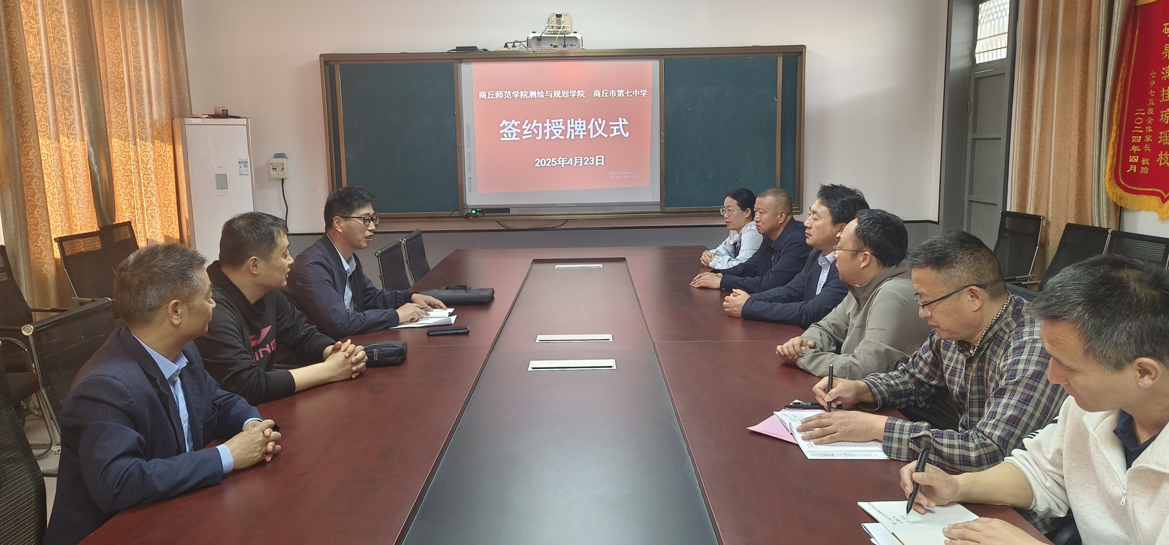 2025年4月23日,beat365正版唯一官网beat365正版唯一官网与商丘市第七中学举行教育实习基地签约仪式,beat365正版唯一官网副院长范况生、商丘市第七中学校长郭洪标等出席活动。